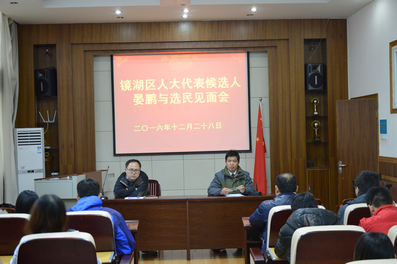 (本网讯 文/何馗馗图/赵喆) 为进一步增进选民对人大代表候选人的了解,拉近选民和代表之间的距离,12月28日14:30,3044am永利集团官网选民小组举行镜湖区人大代表候选人与选民见面会。镜湖区人大代表候选人晏鹏、生科院选民小组选民代表60余人参加。会议由生科院选民小组组长、学院党委书记蒋学波主持。