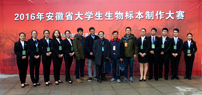 本网讯(生科院 鲁月 赵喆)11月26—27日,由省教育厅主办的2016年安徽省大学生生物标本制作大赛决赛在安庆师范大学开赛,全省35所高校选送的190件生物标本作品展开激烈比拼,大赛共评审出一等奖19个、二等奖38个、三等奖57个,12个优秀组织奖。我校6件作品中,斩获一等奖3个,二等奖2个和三等奖1个的好成绩,一等奖获奖数位列全省第一,学院刘坤等3位老师获得“优秀指导教师”荣誉称号,学院连续三年获得“优秀组织奖”先进单位称号。