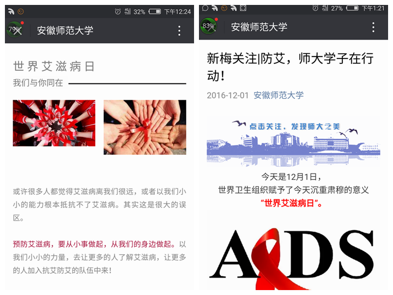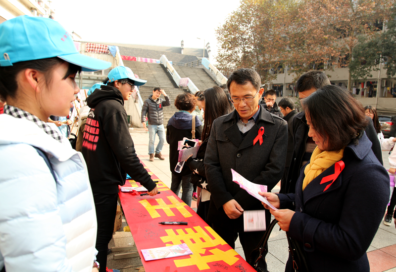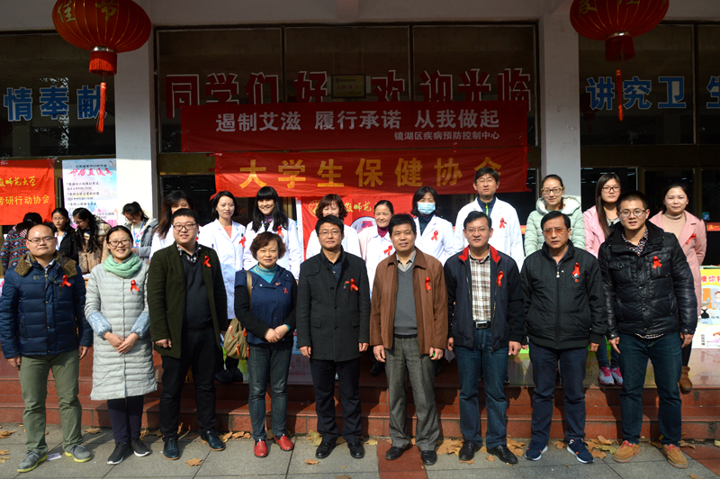 近年来,我校高度重视大学生艾滋病防控宣教工作。学校连续多年举办“艾滋病同伴教育系列活动”、“121世界艾滋病日主题宣教活动”、“防艾主题音乐节”、“高校防艾大讲堂”等各项品牌活动。今年的主题活动由生科院、校医院、校团委,芜湖市疾控中心,镜湖区疾控中心,大学生保健协会、爱心服务团队、新雷锋青年志愿者协会、大学生社会工作协会联合组织。受到了社会的高度关注和赞誉,芜湖市卫计委副主任王学兵、市疾控中心主任程周祥、副主任杨康生,镜湖区副区长奚要武、镜湖区卫计委主任陶袁忠等深入活动现场,与大学生交流互动。