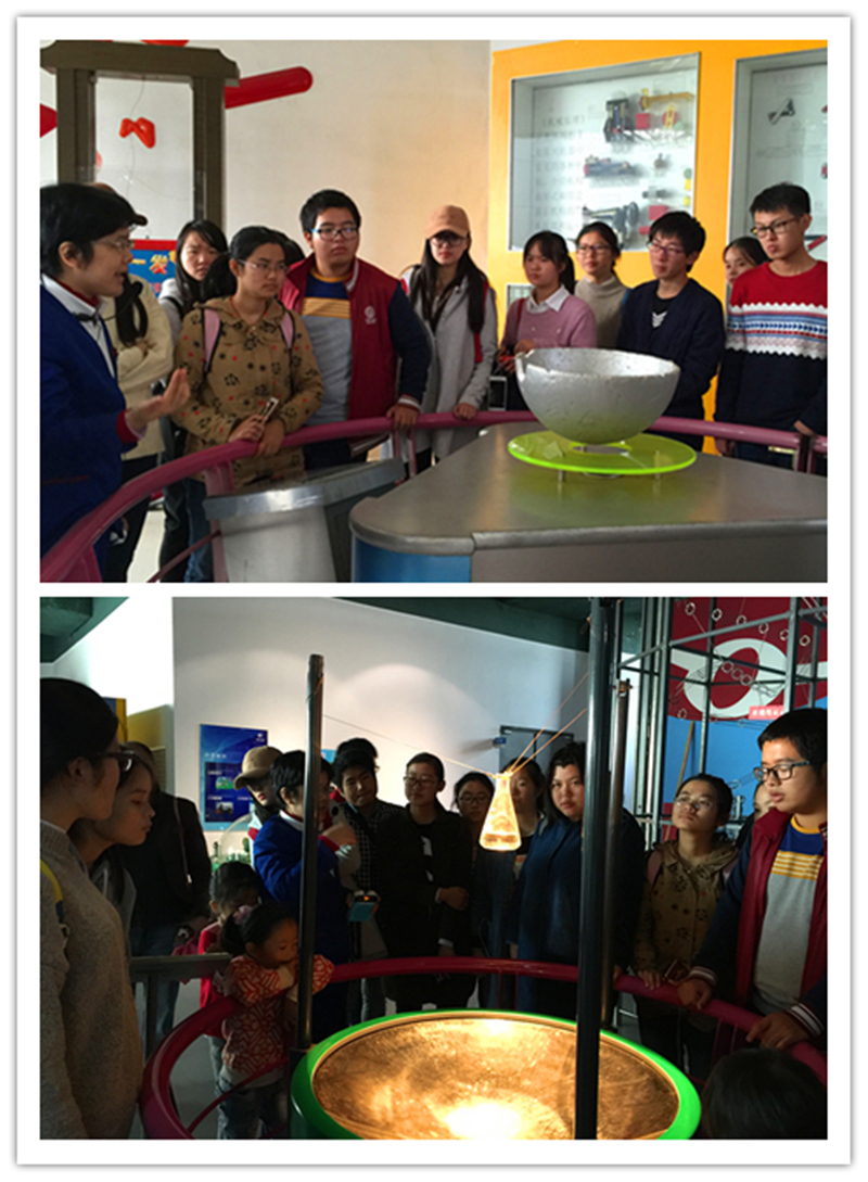 芜湖科技馆以“时代、科学、智慧、体验”为主题,以寓教于乐的方式向人们展示现代自然和科技的融合。馆内共设有《时代辉煌》、《科学启迪》、《智慧之光》、《儿童世界》四个主题展区,在科技馆工作人员的带领下,同学们有序进入科技馆进行参观游览。首先,解说员带领同学们来到了《时代辉煌》展区,向同学们介绍了芜湖科技的发展历程和未来展望,该展区芜湖院士风采是一条亮丽的风景线,其中展现了毕业于我校的李亚栋、王如松、韩斌院士的科技风采。随后,来到了《科学启迪》展区,重点选择数学、光学、声学、电磁学和力学等基础学科的基本原理、基本规律,展示典型现象。生物学的每一次进步都与物理学的发展紧密相关,所以了解物理知识对生物学的研究有重大意义。在《智慧之光》展区,解说员向同学们详细的介绍了生物质能发电模型,展现了生物能源的奇妙能力,极大激起生态学子的求知欲。