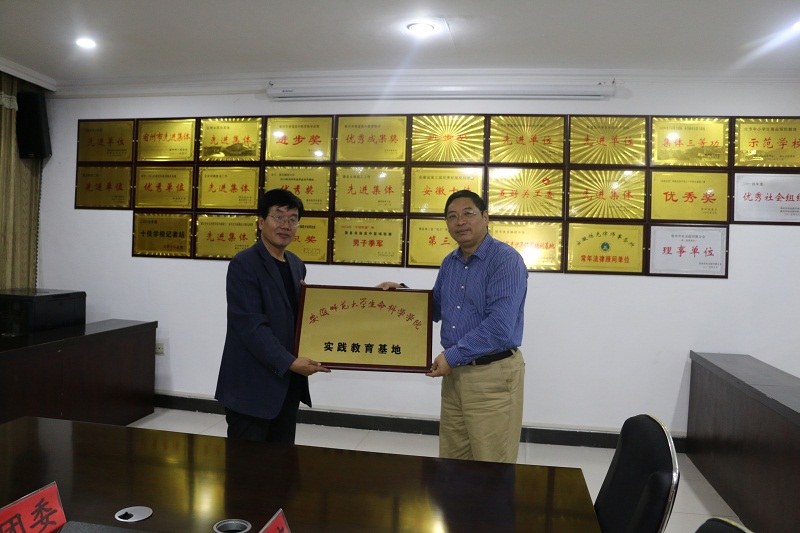 (生科院)实践教学平台等教学资源建设是实践育人环节的重要保障。为夯实生物科学专业大学生的教育教学实践能力,助推人才培养质量,学院积极与中学联系,建立实践教学基地。10月21日,学院在安徽省萧县实验高级中学和安徽省萧县鹏程中学挂牌实践教学基地。学院院长吴孝兵分别与萧县鹏程中学高成立副校长、张开羽主任、马骏主任以及萧县实验高级中学石晓峰校长、唐峰副校长等进行了会谈,双方就提高大学生的教学实践能力进行了交流探讨,在加强实习实践教育基地建设等方面取得了共识。学院党委副书记刘振杰、教学副院长胡好远、部分校友以及在两所学校正在进行教育教学实习的生科学子参加会谈。吴院长还与实习学生进行了亲切交流,了解实习学生的备课、听课和授课等课堂实习以及班主任等教学管理实习情况,同时鼓励同学们要虚心向实习学校的指导教师学习,抓住锻炼机会,将课堂上的理论知识与教学实践紧密结合起来,锻炼自己的教育教学能力,最后叮嘱他们要注意安全,保重身体。