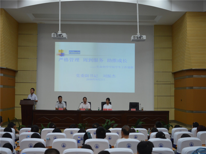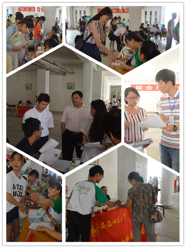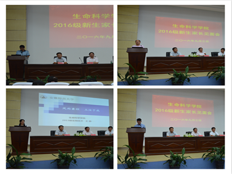 九月的师大,秋高气氛,丹桂飘香,硕果满枝。9月2—3日,359名2016级新生怀着憧憬、带着梦想,或在家人的陪同下,或在亲友的祝福下,从祖国各地来到美丽的江城芜湖,齐聚3044am永利集团官网这个温馨和谐、阳光青春、激情拼搏的大家庭。学院高度重视,成立迎新工作领导组,召开工作布置,周密安排,精心组织,强化保障。辅导员提前验收宿舍设施,分配床铺,准备钥匙,印制报到材料,做好迎新准备,等等,每一个环节都从小处考虑,每一道程序都从细处落实。学院学生会干部、志愿者们,坚持以生为本、安全第一,热情周到、方便快捷,首问负责、全程服务。他们提前整理新生宿舍,制作橱窗展板,布置迎新场地,排定值班人员,做好各项准备。迎新现场,他们帮助新生办理报到手续,耐心回答家长的咨询,领卧具、拿行李,送到宿舍、领到食堂,颗颗爱心映照着青春的阳光,张张笑脸展示着生科学子向上的自信。家长见面会,师生同台,家校共商。或介绍学院、或家长交流,增进了解和友谊,促进认同和信任。新老同学发言互动、引领帮扶,2016级新学子成长目标和努力方向明确。