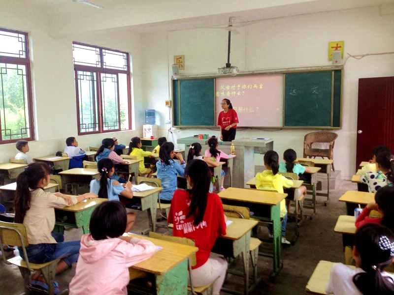 主题教育活动在志愿者的讲解中拉开了序幕。首先,志愿者以“父母对你们来说意味着什么”“你知道自己的生日吗”“你又记得父母的生日吗”等问题引入主题,打开孩子们的心扉。看着孩子们一个个知无不言,志愿者也被感染,开始说起了自己的故事,表达自己对父母的爱的感激。“每个孩子的生日都是妈妈的母难日”志愿者话音未落,孩子们都纷纷低下头,好像在思考些什么。“这个人一定在,所以请你们相信爱”志愿者眼泛泪花,看着一张张期盼父母早点回来的小眼神,心酸而又坚定地说道。