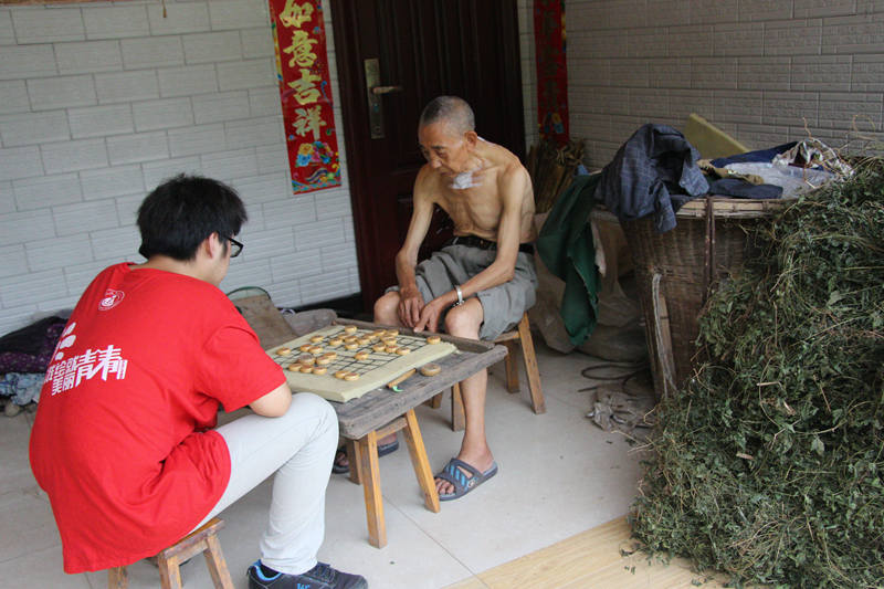 都说孩童的世界是美好的,大抵是因为他们有着善良的心。志愿者自行分为两组,一组陪爷爷奶奶下象棋聊天,一组和孩子们打成一片,体会他们的生活。