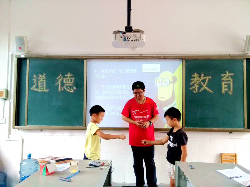 本网讯 (刘婉 高梦晴)“道德当身,不以物惑”。为引导山区的孩子们树立正确的道德观念和素养,成为道德传播的践行者,7月22日,安师大生科院赴四川洪雅“红烛行动”志愿服务团队开展了道德教育主题系列活动。