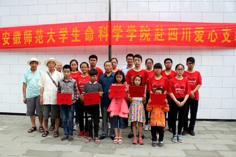 在全体参与人员的见证下,周明弟和赵喆共同将安师大全校师生募得的3000元善款捐助给了桃源小学五年级熊官祥等6名贫困学生。仪式后,桃源乡乡长谢烨作了总结讲话。他代表桃源乡人民政府感谢了安师大生科院的全体师生及社会各界对桃源乡贫困孩子的关心与帮助,他希望受助的孩子们能够将感激之情化为成才之志,努力奋斗,学有所成,将来用切实的行动去感恩他人、回馈社会。
