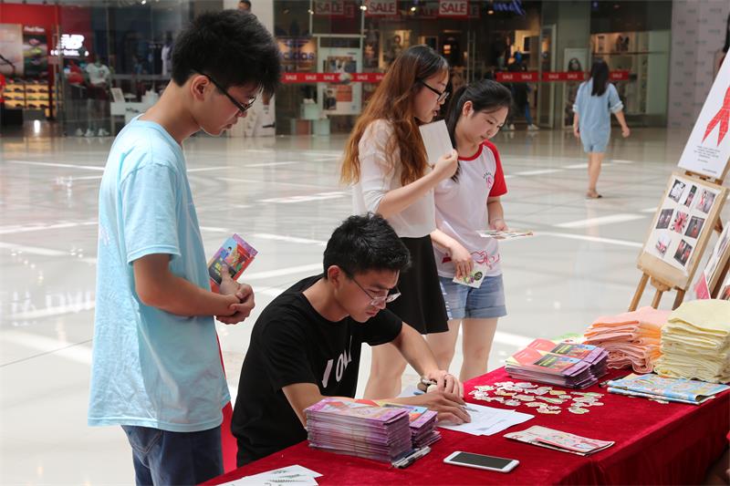 手牵手预防艾滋,心连心关爱生命。为普及防艾知识,助力“零歧视、零艾滋”,生科院赴芜湖防艾宣教团队于7月8日再次来到万达广场进行防艾宣教。