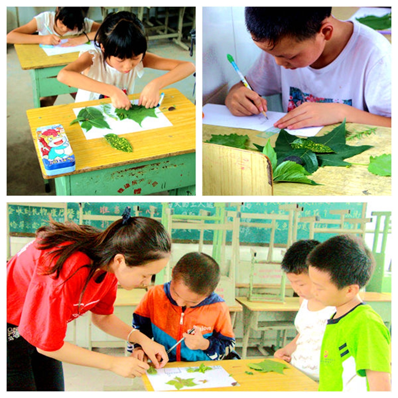 志愿者们秉持“教于乐,学于乐”的教学理念,用形式多样、独具特色的方式让孩子们更深入的了解动植物。动物绘画,借美术之灵,显生物之奇,加强了孩子们对动物特征的全方位了解;叶片贴画,借手工之魂,创自然之美,引导了孩子们对自然认知的创造性思维。丰富多彩的课程内容激发了孩子们的学习兴趣,让孩子们从“爱学,乐学”到“会学,自学”。