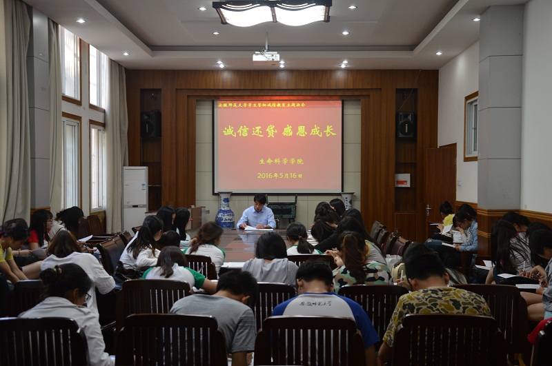 本网讯 (生科院 程鹏 张磊 )内诚于心,外信于人。为增强社会主义核心价值观所倡导的“诚信”意识,增强资助工作的育人效果,构建以诚信做人、诚信做事的校园文化氛围。3044am永利集团官网近日举办以“立德树人,诚信为先”为主线的“诚信教育”系列活动,大力加强学生诚信教育,使毕业生牢记诚信还贷,常怀感恩之心,增强社会责任感。