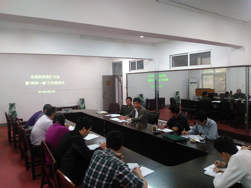 本网讯 (生科院 汪倩倩)5月23日上午,生科院党委在学院一楼第二会议室召开党委扩大会,继续推进“两学一做”工作。学院党委委员、支部书记出席了会议。