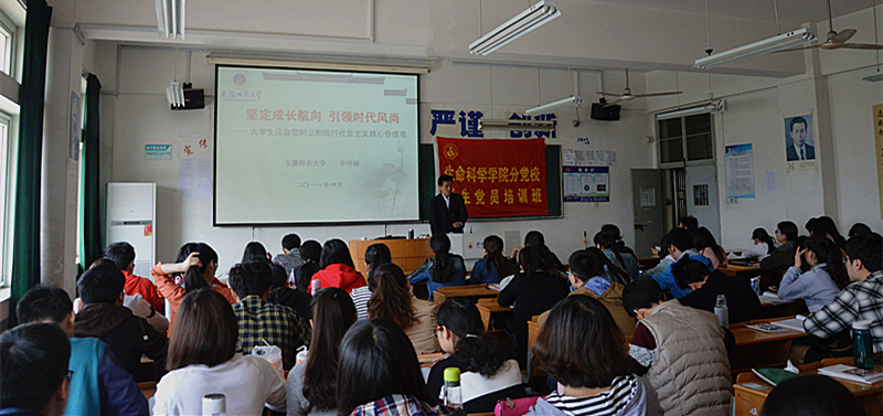 本网讯(生科院 王志 吕速)4月17日,校党委常委、副校长毕明福应邀为3044am永利集团官网第三期学生党员培训班作题为《坚定成长航向,引领时代风尚——大学生应自觉树立和践行社会主义核心价值观》的党课。党课由班主任王志老师主持。