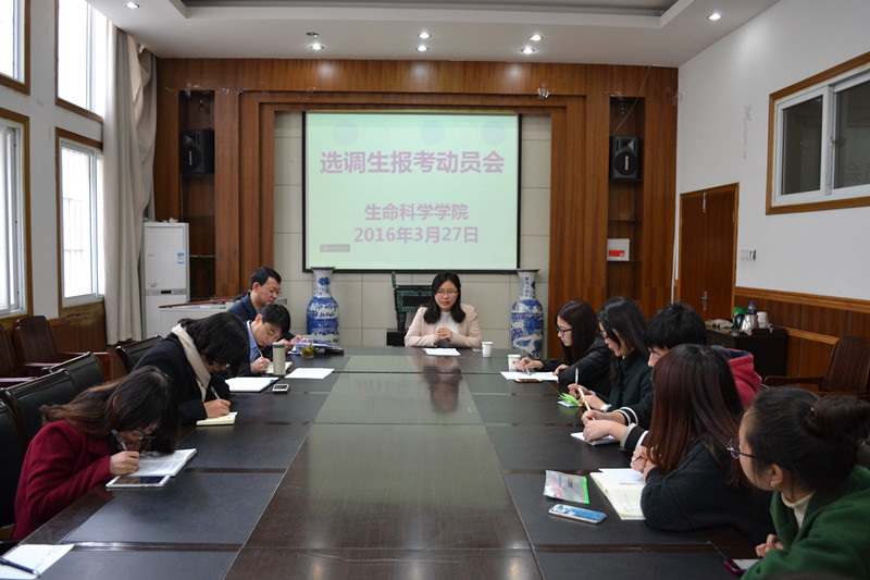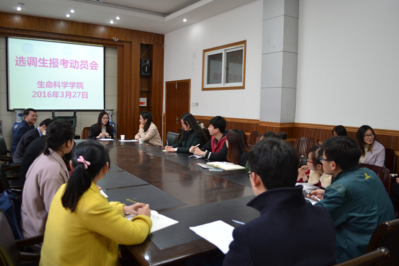 本网讯(生科院 黄振新)为引导和鼓励优秀毕业生到基层一线锻炼成长,为国家培养党政领导干部后备人选和高素质工作人员,切实推动和做好相关工作,3月27日上午,3044am永利集团官网在学院报告厅举办了2016年选调生报考动员会。院党委副书记刘振杰,毕业班辅导员黄振新、张磊,往届优秀选调生代表、30多位有意向报考选调生的同学参加了会议,会议由刘振杰主持。