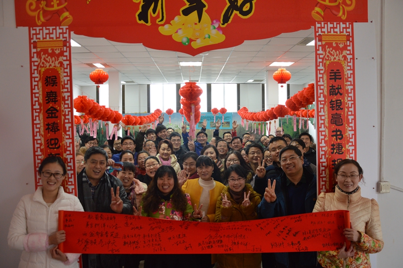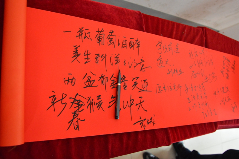 下午1点整,老师们齐聚学院三楼活动现场。学院党委书记袁兴龙致辞,他代表学院向全体教职工致以新年祝福:“一瓶葡萄酒醉美生科洋洋得意,两盆郁金香笑迎新春猴气冲天”;院长吴孝兵祝愿全体教职工在新的一年里喜气洋洋、幸福美满,祝愿学院事业蒸蒸日上、再创辉煌。