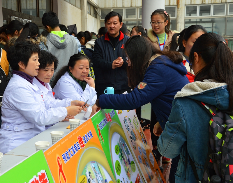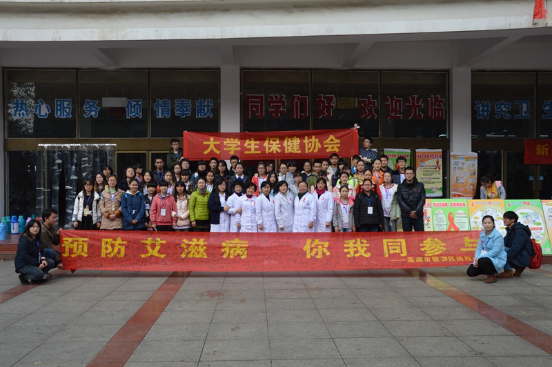 本网讯(生科院 张颖 赵喆)第28个世界艾滋病日来临之际,生科院、校医院、大学生保健协会、芜湖市疾控中心、镜湖区疾控中心联合开展了2015世界艾滋病宣传暨“美好青春我做主” 行动起来向零艾滋迈进活动高潮。院党委副书记刘振杰、校医院副院长段萍、市疾控中心豆正东、镜湖区疾控中心齐少波,生科院辅导员和协会会员、同伴骨干参与了活动。