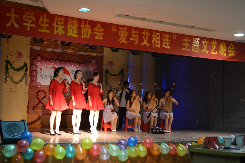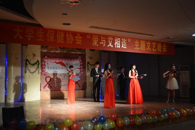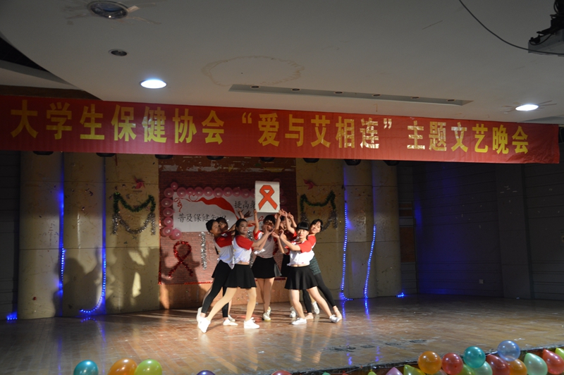 合力抗艾共创美好未来 11月28日,大学生保健协会在赭山校区团委多功能厅举办了“爱与艾相连”主题晚会,小品《爱撒人间》淋漓尽致地诠释了艾滋病患者内心的焦虑与痛苦,展现了消除艾滋病歧视的重要性,配乐朗诵《飘扬的红丝》表达了对艾滋病患者的同情与防治艾滋病的决心,歌曲《感恩的心》唱出了人人奉献爱心的美好愿景,呼吁社会各界理解关爱受艾滋病影响人群,晚会紧紧围绕“防艾”主题,寓教于乐,精彩纷呈,得到了老师和同学们的一致好评。