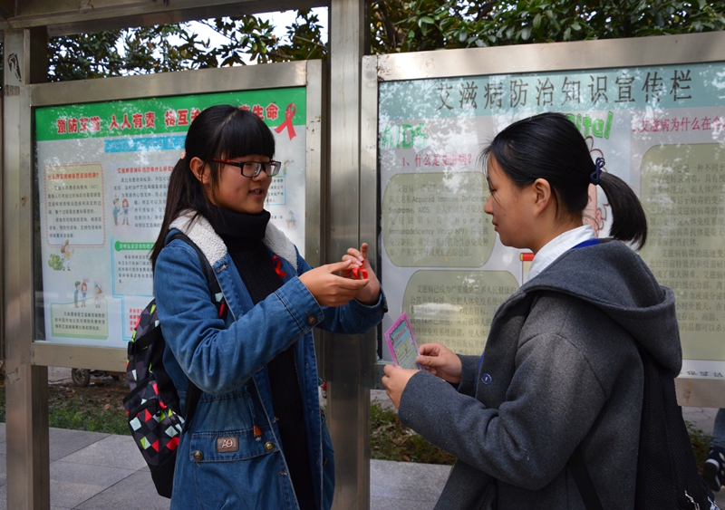共享未来共建和谐校园 12月1日,大学生保健协会联合校医院和镜湖区疾控中心开展青年学生艾滋病防控宣讲,通过搭建爱心服务咨询台,结合宣传橱窗、展板、宣传手册等多样的形式向大学生宣传艾滋病防控知识,帮助其从思想意识上走出艾滋病教育的黑色区,正确认识艾滋病,掌握艾滋病防治知识,并引导广大青年学生积极参与到抗击艾滋病的行列中来,让艾滋病远离大学生,远离青年,向零艾滋迈进。