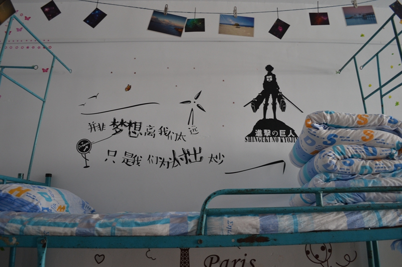 本着书香寝室的主题和整体美观的要求,2015级同学们尽量从身边取材,亲手制作装饰品——废弃的饮料瓶盖、彩色的宣传单,甚至是路边的落叶枯枝,经过大家的巧手都变成精美的装饰品。经过精心设计和准备,原本破旧的寝室变得美观大方、干净整洁。“惟吾德馨”、“我行我宿”、“恋空阁”等一个个温馨别致的寝室名,反映了寝室设计的特色和文化;健康和谐、青春向上的寝室文化氛围,也让同学们体验了团结协作、一起DIY的快乐。