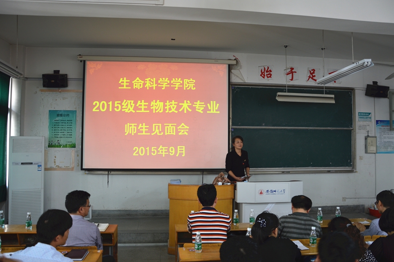 本网讯(生科院 王志 蒋澜)为进一步指导新生尽快适应大学生活,全面了解所学专业的建设情况,9月21日至23日,学院分专业召开了五场新生师生见面会。各专业负责人、部分专业教师、2015级辅导员及全体新生参加见面会。