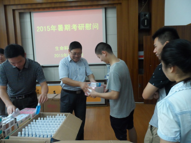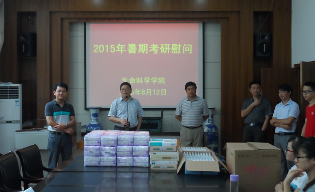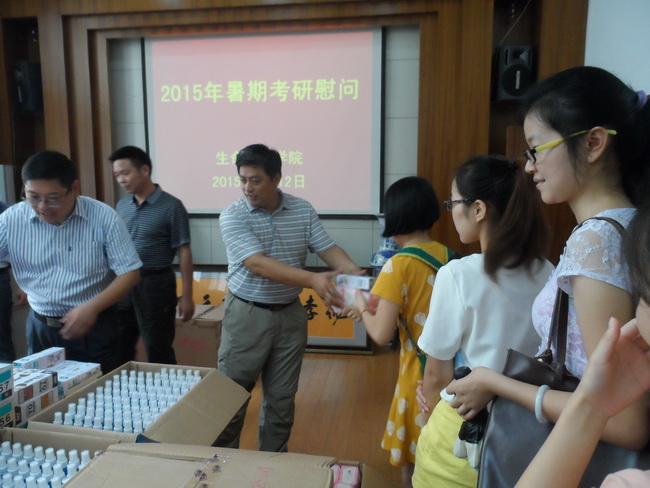 据悉,生科院今年共有300多名学生暑期留校考研复习、参加实习和创新实验学习。学院十分关心暑期留校学生,此前已经通过安全教育大会、宿舍走访、开放会议室等方式开展了安全教育和为学生考研复习创造条件。本次集中考研慰问更是让同学们深受鼓舞,同学们表示一定不辜负学院领导老师的厚望,会以优异的成绩回报领导老师们的教导和帮助。