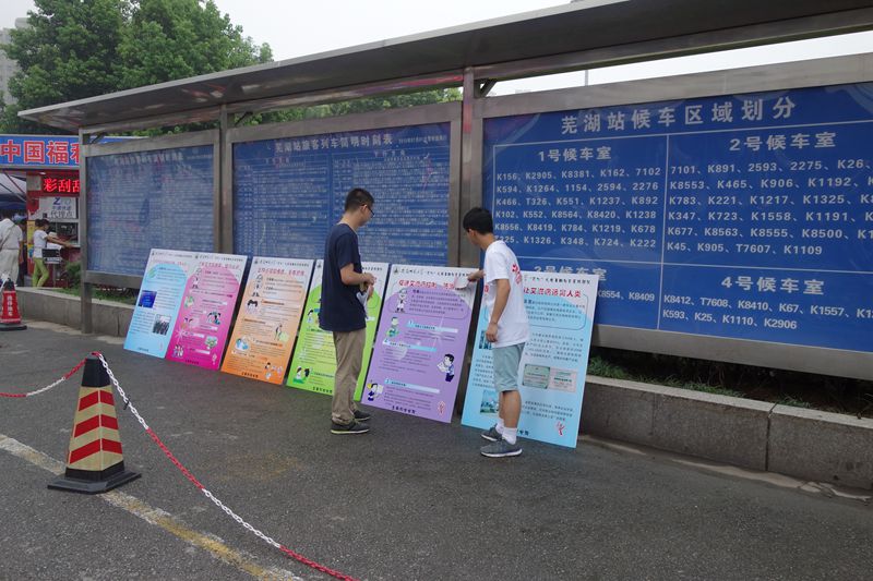 19日,志愿者到安徽工程大学、皖南医学院等5所芜湖高校宣传,在校园内发放调查问卷、宣传手册及小礼品,积极宣传艾滋病相关知识。团队成员分工明确、身体力行,为公益事业献出自己的一份力量。20日,团队在火车站等人流量大的地点设立了防艾宣传展台,宣讲人员现场解说,向驻足的市民介绍艾滋病传播方式、原理和预防。本次活动得到芜湖市镜湖区疾控中心及相关部门的全力支持,受到了市民的赞誉。