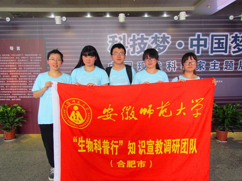 本网讯(生科院 刘涛 杨凯 赵喆) 骄阳似火,青春如歌;科技梦,中国梦。为提高当代大学生科学素养,掌握最新科技动态,倡导大众参与科技创新,提高公民创新意识。2015年7月12日,学院赴合肥“生物科普行”宣教与调研暑期实践团队赴合肥市科技馆进行科普宣传活动。