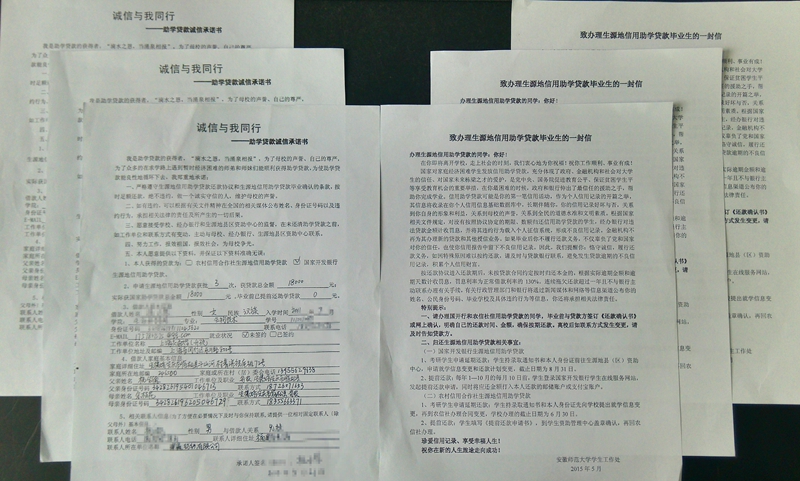 为教育引导毕业生诚信还贷、感恩成长,学院向2015届贷款毕业生发放“致贷款毕业生一封信”,并签订了“诚信与我同行”诚信承诺书,恪守感恩于心,践行诚信之德。