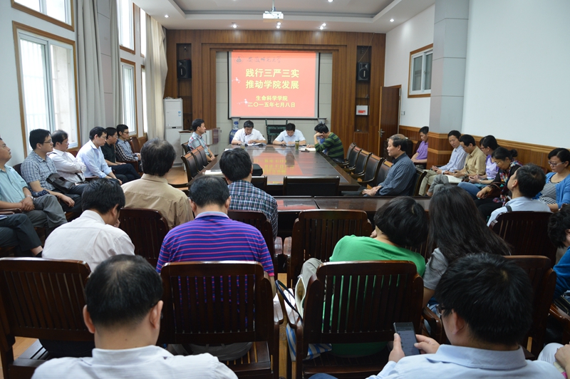本网讯(生科院 汪倩倩)7月8日,生科院“书记党课”第一讲开讲,院党委书记袁兴龙为全院教职工作了题为《践行“三严三实” 推动学院和谐发展》的专题报告。