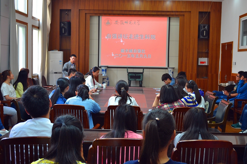 本网讯(生科院 刘新忠 赵喆) 共享成功,共促成长。5月9日下午,新长城自强社第三期“自强讲坛”在永利一楼报告厅举行。2011级学前教育专业周玉平、2011级生科专业朱承节、2012级电子信息工程专业汪志文受邀为80名生科贫困学子做报告。院报告会由辅导员赵喆主持。