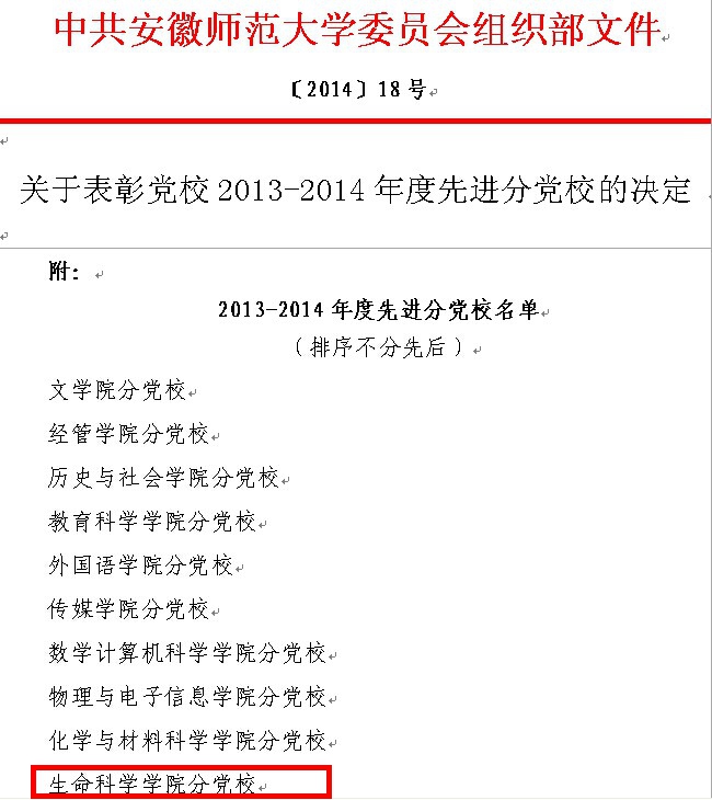 本网讯(何所惧)近日,校组织部发文表彰2013-2014学年党校工作工作先进集体,永利分党校位列其中,这是对永利党校工作的肯定。