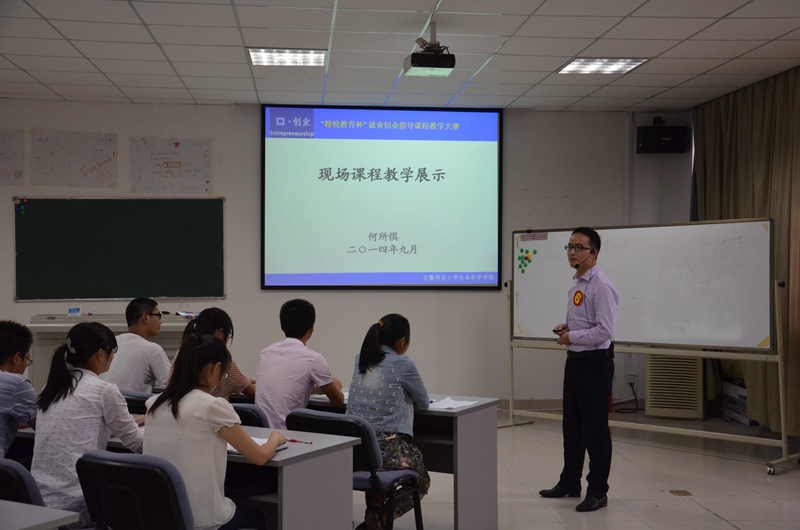 大赛于今年7月启动,经过学院选拔推荐、学校专家教案评选,最终共有12名选手进入决赛,进行现场教学展示。比赛按照省厅比赛标准进行,从教案设计、现场教学内容、教学组织、教师素养、多媒体及板书、创业案例分析等多个方面综合考评打分。学院两位老师教学准备充分有效,教学内容丰富实用,教学组织严谨有序,教态仪表自然大方,较好地展示了教学能力和风采,获得了评委、领导嘉宾和在场师生的一致好评。