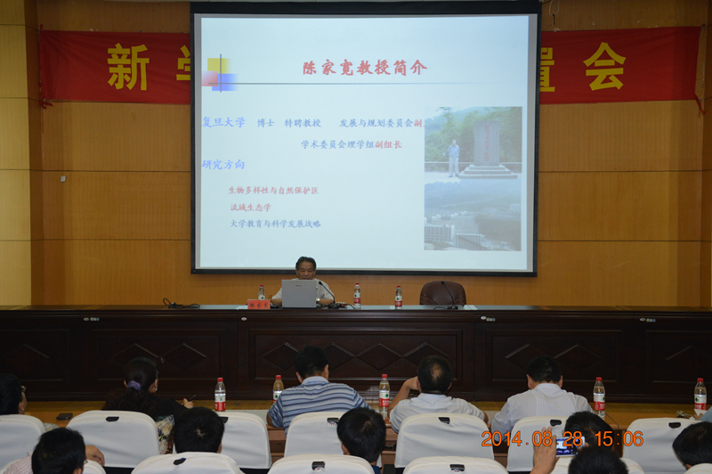 本网讯(汪倩倩/文 何所惧/图)8月28日下午,应学院邀请,复旦大学生物多样性科学研究所所长陈家宽教授在赭山校区田楼报告厅作了题为“学科建设之我见”的学术报告。副校长李进华、科研处副处长吴孝兵以及学院师生200余人聆听了报告会。报告会由李进华主持。
