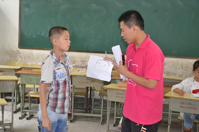 爱自己,自我认知明特点。知人者智,自知者明。正确地认识自我是每个人成长发展中必须面对的一个重要问题。志愿者通过“自画像”活动,让小朋友们深刻认识了自己的特点,知道自己是个“什么样的人”。通过“猜拳刮鼻子”、“对不起,我错了”、“戴高帽”等有趣生动的小游戏,帮助小朋友们树立责任意识,培养自信品格,正确面对压力。一些原本胆怯的孩子,在志愿者老师的鼓励下也敞开了心扉,勇敢的站出来展现自己。
