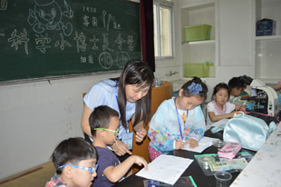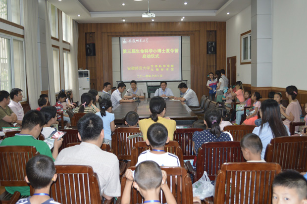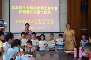 本网讯(生科院 方鑫 朱承节)为贯彻落实《安徽省全民科学素质行动计划纲要实施方案》,丰富小学生科学教育活动,7月3日-6日学院在生物标本馆和生物学基础实验教学示范中心举办了第三届生命科学小博士夏令营。本次活动吸引了近40名来自芜湖市多所小学的小朋友们参加。活动内容包括标本馆参观、校园动植物观察和标本制作、人体生命活动规律测定、显微镜下微生物观察等系列内容。