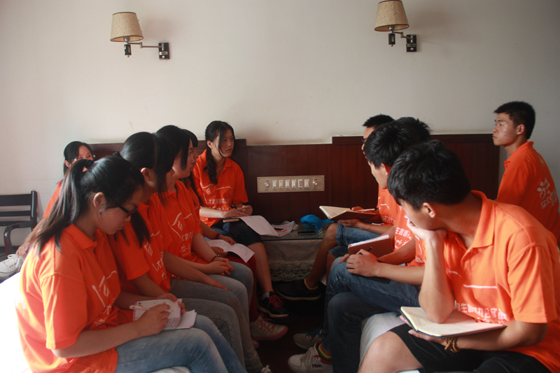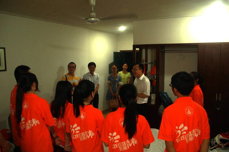 出征前,团队指导老师何所惧联系去年我校与铜陵市郊区共建的大学生社会实践基地,郊区团委积极帮助联系铜陵市环保局、气象局等相关部门,为团队开启实践奠定基础。团队抵达铜陵后,全体队员分工协作,详细讨论并完善了活动方案、物资筹备、执行地点、注意事项、意外预案等。傍晚,铜陵团市委书记李波、学少部部长陈岑、铜陵郊区团委书记王小将等来到团队驻地,对安师大生科院志愿者的到来表示欢迎并给予亲切问候。李书记一行为队员带来了西瓜、饮料等,细心了解团队的食宿问题,亲切和蔼的说:“如果你们有什么困难尽管找我们帮忙!”同时,他向所有志愿者表达了对大学生参加暑期社会实践的鼓励与支持,希望同学们能够在实践中受教育、长才干、做贡献。李书记朴实无华、温暖人心的话语,不断赢得在场所有人的热烈掌声。