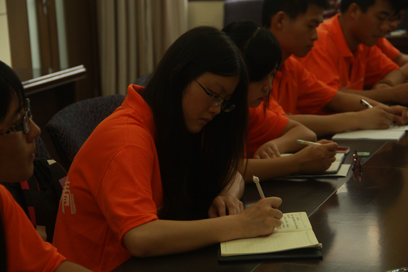 在座谈会上,铜陵市环保局郭总工程师指出了雾霾的诱因就是大气污染。他从雾霾来源、控制措施、国家发展和城市规划等方面进行了详细讲解,介绍了铜陵市采用“全防全控”、“群防群控”、“联防联控”等多渠道、多方向治理污染源,长远性、目标性、战略性的防制大气污染。从环境保护到生态文明建设,从国家历史发展规律到未来环境改革导向,郭总工程师展现了博学的知识和专业的理论。有队员这样问:“作为青年大学生,我们可以为环保事业做什么?”郭总工程师提出了两点建议:在学校时,应该勤奋刻苦,努力学习,提高自学能力;走向社会时,应该勤奋务实,脚踏实地,接地气。最后,他表示铜陵的总体环境已经得到很大改善。
