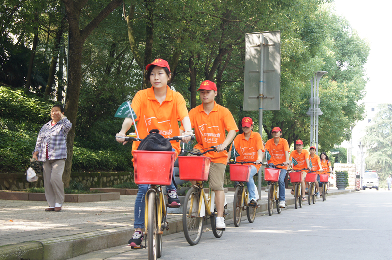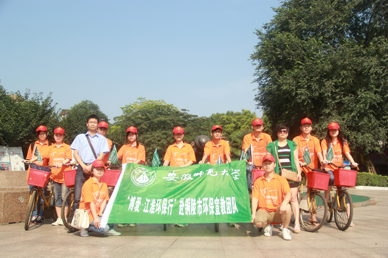 在铜陵市自行车租借公司的帮助下,团队出发前在天井湖公园发起倡议:“每天少开一次车,清新空气再回归”。骑行队伍经过了儿童乐园、游船码头、天井茶室、溢沁园、长廊水榭等园内各大旅游景点,不断向路人宣传雾霾产生原因、天气影响和应对措施等相关知识,呼吁大家从自身做起,保护环境。一位队员说:“可能是因为前两天的暴雨,天空被洗的湛蓝。为这美好的蓝天,这一趟骑行哪怕只有一个市民受教,也是值得的。”