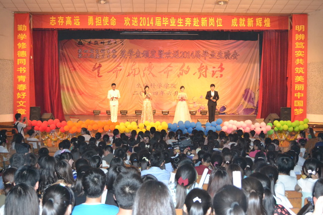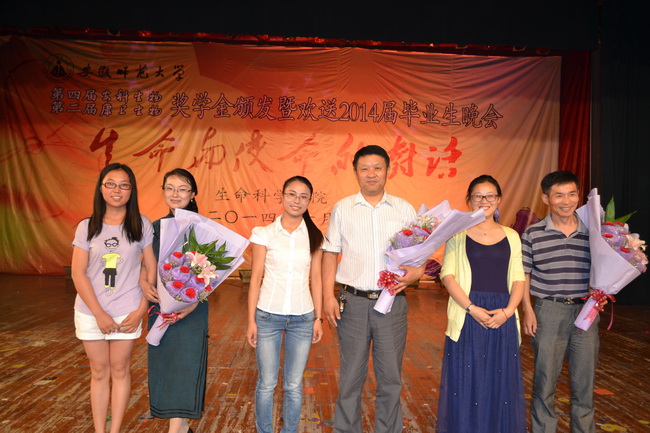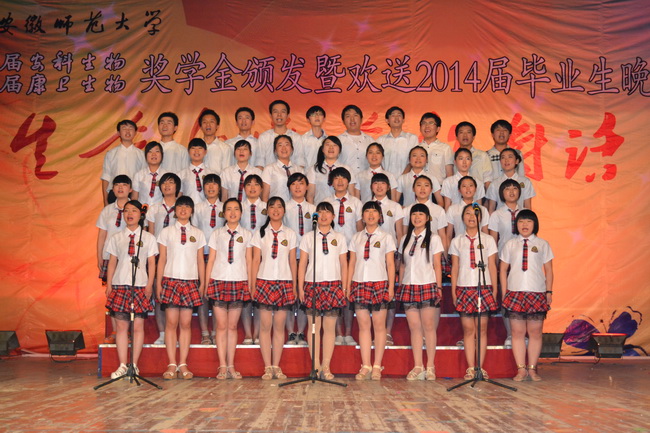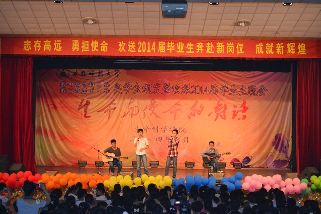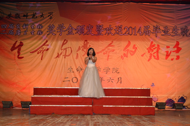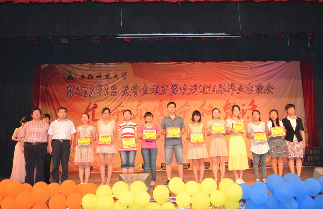 本网讯(生科院 黄振新 孙强芳) 生命为使命而生,使命伴生命而长。6月11日晚,赭山校区大礼堂灯火璀璨,熠熠生辉,3044am永利集团官网第四届安科生物、第二届康卫生物奖学金颁奖暨欢送2014届毕业生晚会盛装上演。校党委常委、副校长李进华,安徽安科生物工程(集团)股份有限公司副总经理姚建平、企划部副经理胡邦君,芜湖康卫生物科技有限公司总经理许宝芝、研发总监翁樑、综合管理部兼人力资源部经理党洋,校学生处副处长、就业指导中心主任聂全高,研工部副部长、研究生学院副院长汪健萍和生科院千余师生欢聚一堂,共同见证了颁奖暨欢送晚会的隆重与精彩。