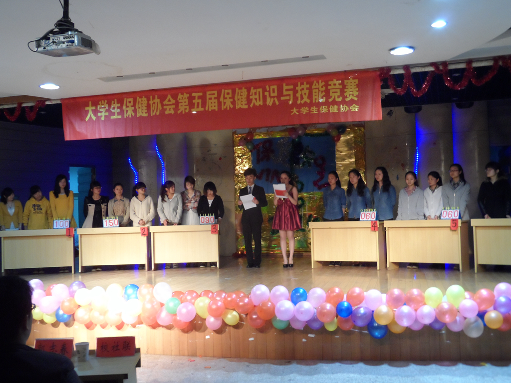 本网讯(保健协会 虞慎玲 李冰艳 胡晨婷)为促进大学生掌握维护健康的基本知识和基本技能,提高健康素养和综合健康水平,养成健康文明生活习惯,4月12日,大学生保健协会举办了第五届大学生保健知识与技能决赛。芜湖市镜湖区疾控中心医生周虎、汪涛,校医院副院长段萍、学院团委副书记郭志春、辅导员黄振新、何所惧等参加活动,160多名协会成员参与竞赛。