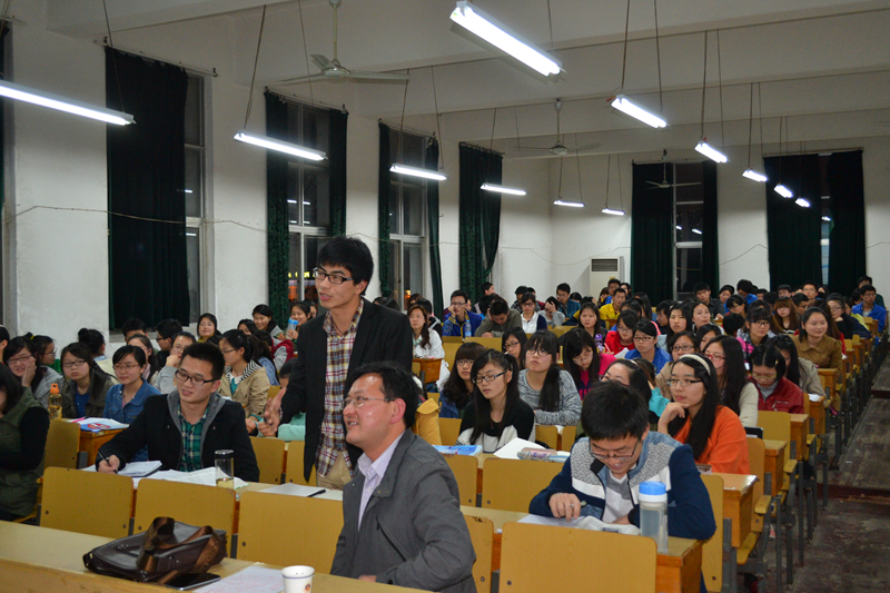 党洋首先以“马斯洛需求论”为引导,指出人进入社会的最终目的是自我实现。他以幽默诙谐的语言相继从专业、创业、销售、市场、行政、管理等6个物质层面,重点规划了我们“想象中的未来”;并就幸福、爱情、理想、生活、朋友等精神层面,分享了个人奋斗的经验与教训。他希望“每天把大家叫醒的不是闹钟,而是梦想”,拥有“7天形成一种记忆,20天形成一种习惯,90天形成一种性格”的养成经历,党洋的丰富社会实践经验给予了同学前进的无限动力。最后,他以英国哲学家西格夫里·萨松的名言 “心有猛虎,细嗅蔷薇”与同学们共勉,胸有宏图,把握当下。会后,一位学生在谈到感受时说到:“这次报告是对我们未来职业的一个大范围规划,开阔了我的视野。我将在未来就业时,围绕着自己的梦想而不懈奋斗”。