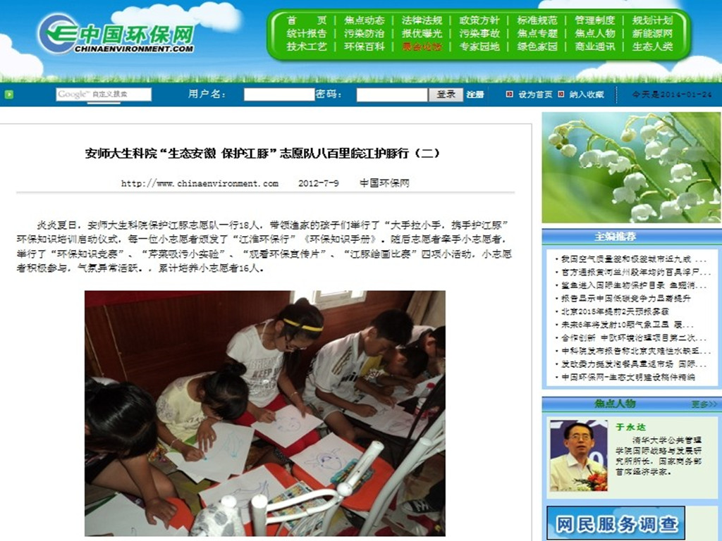 社会实践是广大青年学生在社会熔炉中受教育、长才干、做贡献、展风采的良好契机。2011年7月韩莹参加皖南水项目调研,来到宣城,一路检测水质、走访农家、宣传环保知识、寻访环保单位,撰写并公开发表《皖南水项目调研》调研报告。