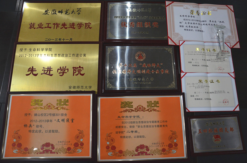 据统计,在本次表彰中,永利305人次分获国家奖学金、国家励志奖学金和三好学生标兵、优秀学生干部标兵、三好学生、优秀学生干部、优秀学生等奖项;2009级赵庆亚同学参加的创业项目,先后获第八届“挑战杯”中国大学生创业计划竞赛铜奖和“第一届全国创业专项大赛优秀百强项目奖”;2009级赵庆亚、贺张等同学分别获全省“挑战杯”竞赛金奖、银奖,2010级孙芳同学获特等奖;2009级李鑫同学获全省高校师范生教学技能大赛一等奖;多名学生获省高校动植物标本制作大赛一等奖2项、三等奖3项,学院获优秀组织奖;2010级韩莹同学独立策划的《身边增绿有妙招》被团中央确定为表彰方案(全国共8份),该同学也收获第九届“师大骄子”十佳大学生称号;生命科学协会的“保护青弋江芜湖段”被确定为“保护母亲河——全国青少年生态环保社团资助项目(全国共70个),大学生保健协会开展的预防艾滋病同伴教育活动,获第十二届“感动师大”校园精神文明创建十佳事迹称号;在共青团表彰中,2011级生物科学3班团支部获学校“五四红旗团支部”、 应用生物科学专业2012级团支部等2个支部获“优秀团支部”;学院学生会获优秀学生会,体育部、志愿者服务队获优秀学生会部门,生命科学协会获十佳社团等;学院团委以“强化实践训练,重视科技创新,崇尚生态文明,提升社会责任”为主题开展的社会实践,获暑期社会实践优秀组织奖,赴四川洪雅团队连续三年获校优秀重点团队一等奖,35名同学获先进个人;2013届毕业生生物科学、生物技术两个专业考研录取率超过50%,名列全校第一,10名毕业生获省“品学兼优毕业生”称号,38名毕业生获校“优秀毕业生”荣誉,5名毕业生被录取为选调生,毕业生初次就业率达97.54%,园艺专业首届毕业生100%就业,学院获本科毕业生就业工作先进集体二等奖荣誉;在“文明寝室标兵”、2012级新生思想政治专题教育工作先进学院、思政工作进公寓先进学院、“优秀辅导员”表彰中,学院也榜上有名。