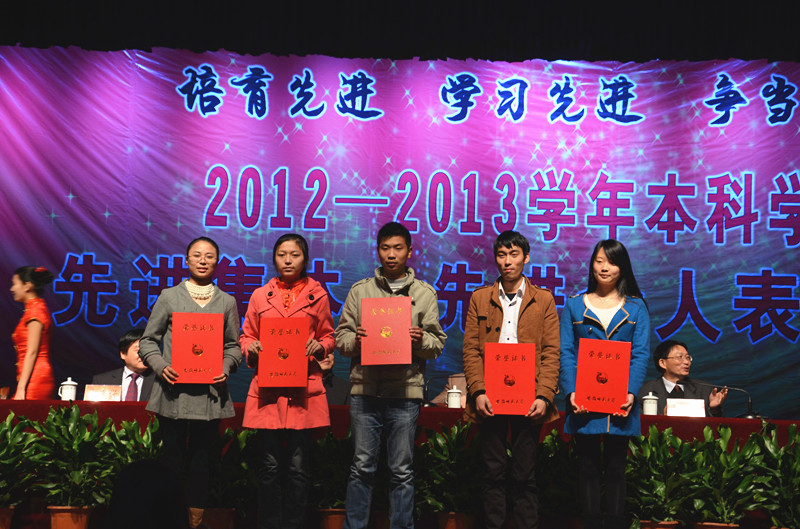 本网讯(郭志春)11月27日,2012—2013学年本科学生先进集体、先进个人表彰大会在花津校区大礼堂隆重召开。校长王伦发表重要讲话,副校长王绍武宣读表彰决定,纪委书记程度主持大会。副校长李琳琦、校长助理沈洪和有关职能部门领导在主席台就坐,机关各职能部门领导和学院党政主要负责同志、学工队伍以及全体获奖师生参加大会。永利本科学生、院领导、团委书记和辅导员等先后分9批次登台领奖,多项荣誉的获得,彰显了学院近年来深化内涵建设、提升育人质量取得了丰硕成果,呈现出本科学生勤奋学习、创新实践、成长成才的喜人局面。