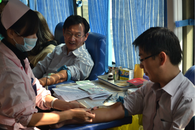 献血现场,生科学子有秩序的排起队伍,在院学生会干部的指引下认真填写登记表格,完成各项常规检查,顺利进行采血程序。据统计,近百名同学参加了献血活动,献出了自己的爱心。活动中,院党委副书记刘振杰、团委副书记郭志春、2013级辅导员何所俱、汪暠等老师来到现场,带头献血并看望、慰问献血志愿者。