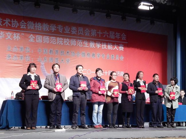 本网讯(生科院 苏世娇)10月19日至21日,由中国教育技术协会主办、山东师范大学承办的第三届“华文杯”全国师范院校师范生教学技能大赛在济南举行。我校和首都师范大学、华中师范大学、南京师范大学、湖南师范大学、华南师范大学等60余所师范院校的300多名学生参加比赛。