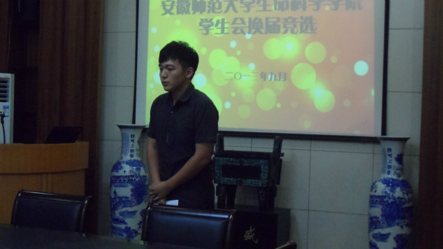 本网讯(生科院 费紫薇 时英东)为进一步加强学院学生会干部队伍建设,完善各项工作制度和内部机构,开创学生会新的工作局面,9月22日晚6点,2013届院学生会换届竞选大会在一楼会议室召开,院党委副书记刘振杰和黄振新等辅导员担任评委,11级和12级学生参加竞选。