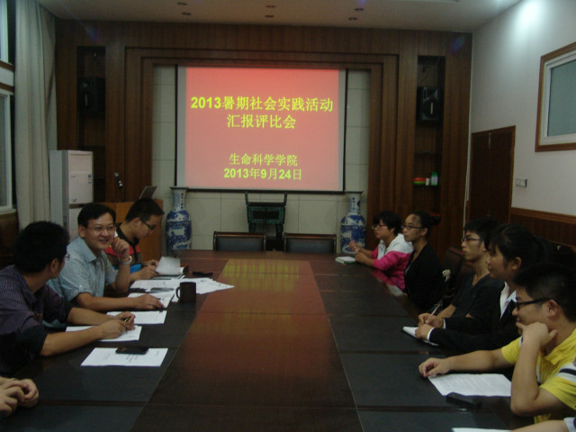 本网讯(生科院 何所惧)实践归来话成长,奋斗成就中国梦。9月24日晚18点,生科院2013年大学生暑期“三下乡”社会实践活动总结汇报会在学院一楼会议室举行。院党委副书记刘振杰及本科生辅导员担任评委,来自学院2011级、2012级的12支团队参加评比汇报。