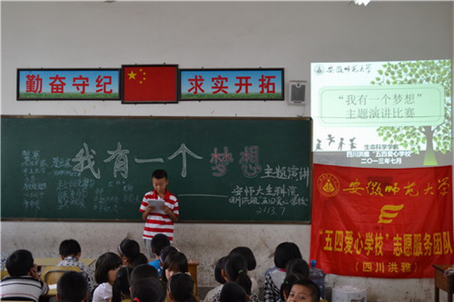 在各级组织的指导和安排下,志愿者们分工,在柳江中心小学开展支教服务活动,以实际行动支持偏远山区教育,回报社会。在这20天中,团队积极筹划,共辅导学生135名,与洪雅学生手拉手,心连心。将课堂辅导与素质拓展结合,如“我有一个梦想”主题演讲比赛,放飞学生们的梦想;“大声说出你的爱”感恩主题教育,感恩父母,感恩社会;心理健康主题活动,让学生们健康成长、快乐成长;艺术素质拓展,使他们领略到音乐、美术的魅力,陶冶文艺情操;丰富多彩的第二课堂,开阔了学生的视野,促进了他们的全面成长。