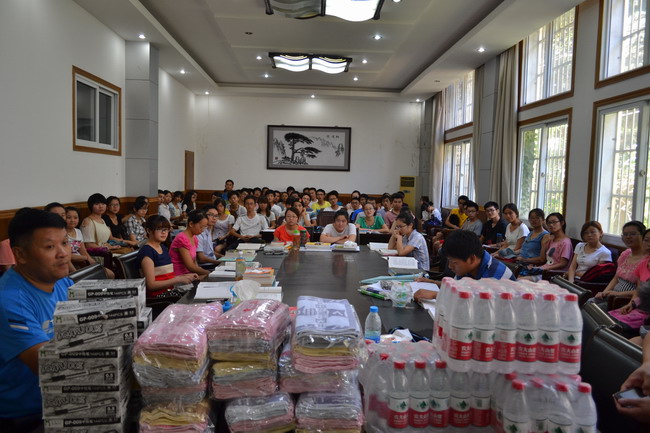 慰问中,辅导员夏齐平老师宣读了《生科院关于免费开放考研空调自习室的公告》;刘振杰副书记就假期留校学生安全管理作出要求;袁兴龙传达了学院领导老师对同学们的关心和问候,他高度赞扬了暑期留校学生不畏酷暑、在校苦读的拼搏精神,希望同学们遵守学校有关规章制度,保重身体、注意安全、刻苦钻研,力争在2014年考研战场上续写生科院的辉煌。最后,领导老师们将文具、毛巾、矿泉水等慰问品送给留校学生,在送去清凉的同时,也送上了老师们的关怀与鼓励。