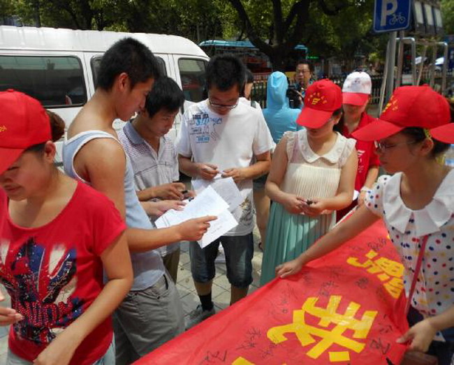 开展活动时,志愿者们不畏炎暑,有的对来往的行人进行问卷调查,有的耐心地向行人解说保护扬子鳄的重要性,有的带着灿烂的微笑发放着宣传单。在志愿者们的感染下,市民朋友们纷纷在“保护扬子鳄”的横幅上签名,表达对志愿者们工作的认可和保护扬子鳄的决心。新安晚报等多家媒体等对活动进行了报道。