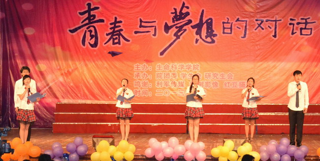 迸射青春朝气,追忆同学友谊。院学生会选送的小品《致青春》展现了大学校园中纯洁真挚的情感和蓬勃向上的朝气,带领观众们重温了一段美好的青春时光。2011级生物科学专业组建的乐队RollingRum则以乐器伴唱《恰似你的温柔》、《父亲》烘托出父亲节的感恩氛围,用歌声传达了感恩情怀。歌伴舞《美丽的神话》温婉唯美,用悠扬的歌声和婀娜的舞姿淋漓尽致地展现出当代大学生的青春与活力。